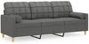 vidaXL 3-Sitzer-Sofa mit Zierkissen Dunkelgrau 180 cm Stoff 3200791