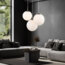 • Lampenschirme: Glas, satiniert (3 verschieden große Kugeln)