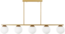 Glamouröse Pendelleuchte mit 5 Lichtquellen . Eine funktionelle Leuchte ist nicht nur ein wichtiger Teil jeder Inneneinrichtung, sondern kann auch eine schöne Dekoration sein, die das Design eines Raums aufwertet. Diese wunderbare Deckenleuchte in stilvollem Gold mit matter Oberfläche ist ein echtes Schmuckstück. Die schlichten und eleganten Linien der Konstruktion in Kombination mit den kugelförmigen Glasschirmen sind eine perfekte Ergänzung für jeden Esszimmer- oder Küchenbereich.