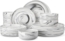 MALACASA LUNA 18tlg Marmorgraues Porzellan Tafelservice bietet ein modernes und elegantes Geschirrset für 6 Personen. Hergestellt aus hochwertigem Porzellan, ist es spülmaschinen- und mikrowellengeeignet. Das einzigartige vertikale Design sorgt für Stabilität und erleichtert das Ausgießen von Lebensmitteln. Mit einer hohen Temperatur von 1400 Grad Celsius gebrannt, ist das Geschirr langlebig und robust.