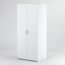 Praktischer Kleiderschrank mit zwei Flügeltüren, ausgestattet mit zwei Innenböden und einer Kleiderstange. Die vollständig weiße Struktur fügt sich harmonisch in moderne Schlafzimmer ein und bietet eine platzsparende Lösung zur Aufbewahrung von Kleidung. Der Schrank ist aus Melamin-Spanplatte gefertigt, was ihn stoß- und kratzfest sowie langlebig macht.