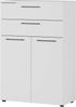 - Zwei Schubladen und zwei Türen mit verstellbarem Einlegeboden