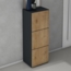 Der Doporro Schuhschrank bietet mit seinen 6 Fächern ausreichend Stauraum für bis zu 12 Paar Schuhe. Mit den Abmessungen 45 x 36 x 120 cm und dem feuchtigkeitsbeständigen Holzwerkstoff ist er sowohl funktional als auch langlebig. Die einfache Montage und die Soft-Close-Funktion der Türen sorgen für eine benutzerfreundliche Handhabung. Verstellbare Trennwände ermöglichen eine individuelle Anpassung an Ihre Bedürfnisse.