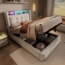 Dieses moderne Einzelbett mit den Maßen 90x200 cm vereint Funktionalität und Stil. Der hochwertige Baumwoll-Leinenbezug in Beige sorgt für eine warme Ausstrahlung. Das gepolsterte Kopfteil bietet nicht nur hohen Liegekomfort, sondern ist auch mit zwei Steckdosen, einem USB- und einem Type-C-Anschluss ausgestattet. Die integrierte LED-Beleuchtung mit Fernbedienung ermöglicht eine individuelle Anpassung von Lichtfarbe und Helligkeit. Zudem bietet das hydraulische Stauraumsystem eine praktische Aufbewahrungslösung.