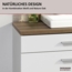 - Farbe/Design: Korpus und Front in Weiß, Abdeckplatte und Boden in Nature Oak