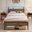 Das MSMASK Bettgestell in Vintage Braun vereint stilvolles Design mit modernen Funktionen. Mit einer Liegefläche von 190x90 cm und einer maximalen Belastbarkeit von 255 kg bietet es Stabilität und Komfort. Die integrierten 3 USB-Anschlüsse und die LED-Beleuchtung sorgen für zusätzlichen Komfort. Das Bettgestell besteht aus robusten MDF-Holzplatten und Metall und hat eine Bodenfreiheit von 30 cm.