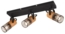 Dreiflammiger LED Deckenstrahler in Schwarz mit Holzsockel und schwenkbaren Metall-Gitterschirmen. Diese Leuchte bietet gezielte Akzentbeleuchtung und sorgt mit ihren interessanten Lichtspielen für ein gemütliches Wohnambiente. Ideal für Flur, Wohn- oder Schlafzimmer, überzeugt sie durch ihre vielseitigen Einsatzmöglichkeiten und dekorativen Eigenschaften.