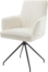 Drehstuhl Heira-Flex mit Armlehnen vereint elegantes Design und hohen Sitzkomfort. Der Stuhl ist mit einem pflegeleichten Bouclé-Stoff in warmem Weiß bezogen und bietet eine hochwertige Polsterung mit Taschenfederkern. Das konisch geformte Kreuzgestell aus pulverbeschichtetem Metall sorgt für Stabilität und eine praktische 180° Drehfunktion. Ideal für stilvolle Essbereiche.