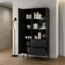 Der Meorati Vitrinenschrank in Schwarz ist ein stilvolles Möbelstück, das mit seinen Maßen von 200 cm Höhe, 100 cm Breite und 60 cm Tiefe optimalen Platz bietet. Gefertigt aus 16 mm dickem Holzwerkstoff, vereint er Stabilität und Langlebigkeit. Die Vitrine verfügt über zwei geräumige Schubladen und eine Glastür mit beleuchteten Regalen, die Ihre Lieblingsstücke elegant in Szene setzen.