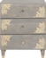 Dieser moderne Nachttisch in Grau aus massivem Mangoholz bringt einen frischen Vibe in Ihr Schlafzimmer. Mit seinen kompakten Abmessungen von 50 x 33 x 62 cm (L x B x H) bietet er ausreichend Stauraum durch drei Schubladen und ist ideal für Ihre nächtlichen Essentials. Die handbemalte Vorderseite und die goldenen Akzente verleihen ihm ein einzigartiges, künstlerisches Finish, während die robuste Bauweise für Langlebigkeit sorgt.