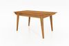 Esstisch Jetro aus massiver geölter Wildeiche mit den Abmessungen 100 x 120 x 77 cm. Die Tischplatte ist 3 cm stark und wird von stabilen, schrägen Holzbeinen getragen. Der Tisch ist montiert und bietet ausreichend Platz für gemeinsame Mahlzeiten. Sein natürlicher Stil und die durchgehenden Lamellen machen ihn zu einem stilvollen Möbelstück für Ihr Esszimmer.