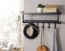 Die Wandgarderobe aus schwarzem, lackiertem Stahl bietet mit fünf Haken, einer Kleiderstange und einer praktischen Ablagefläche optimalen Stauraum für Ihre Kleidung und Accessoires. Mit den kompakten Maßen von 70 x 20 x 20 cm fügt sie sich harmonisch in jeden Flur ein. Handgefertigt und ein Unikat, überzeugt sie durch ihr schlichtes Design und eine empfohlene Maximalbelastbarkeit von 15 kg.