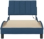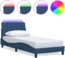 Das vidaXL Bettgestell "Hanko" in Blau bietet Ihnen eine stilvolle und komfortable Schlaflösung. Mit einem stabilen Rahmen aus Stoff und Sperrholzlatten sorgt es für eine optimale Gewichtsverteilung und Stabilität. Das Kopfteilkissen aus PP-Fasern bietet hervorragenden Komfort, während die integrierte LED-Beleuchtung eine angenehme Atmosphäre schafft.