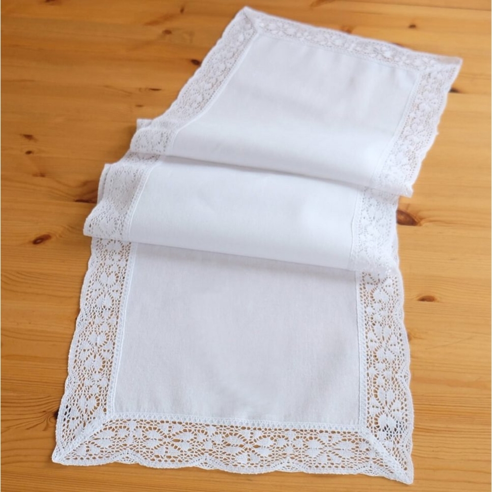 Der Tischläufer JANA in der Größe 40x140 cm bringt Eleganz und einen Hauch von Nostalgie in Ihr Zuhause. Mit seiner klassischen Optik in strahlendem Weiß und der feinen Häkelkante verleiht er jedem Tisch eine stilvolle Note. Hergestellt aus pflegeleichtem Polyester, ist der Tischläufer langlebig, knitterarm und maschinenwaschbar bei 30 °C, was ihn ideal für den täglichen Gebrauch macht.