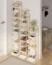 Das vertikale Schuhregal bietet mit seinen kompakten Abmessungen von 30 x 26,5 x 171 cm eine ideale Lösung für kleine Räume. Es ist freistehend, verstellbar und vielseitig einsetzbar, beispielsweise als Pflanzenständer oder zur Aufbewahrung von persönlichen Gegenständen. Hergestellt aus hochwertigen Spanplatten, trägt jede Trennwand bis zu 5 kg. Die einfache Montage wird durch klar beschriftete Teile und eine verständliche Anleitung unterstützt.