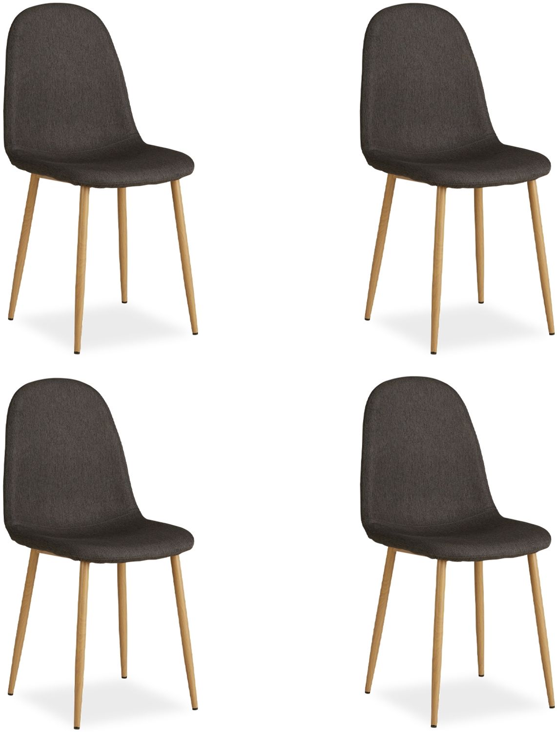 Nehmen Sie Platz auf unseren bequemen Esszimmerstühlen im 4er Set und genießen Sie Speisen und Getränke im Kreise Ihrer Liebsten. Die modernen Küchenstühle mit edlem dunkelgrauen Leinenstoffbezug bieten optimalen Komfort. Massive Metallfüße in Holzoptik sorgen für Stabilität und Sicherheit. Diese vielseitig kombinierbaren Stühle passen perfekt in Esszimmer, Küche, Wohnzimmer oder Arbeitszimmer.