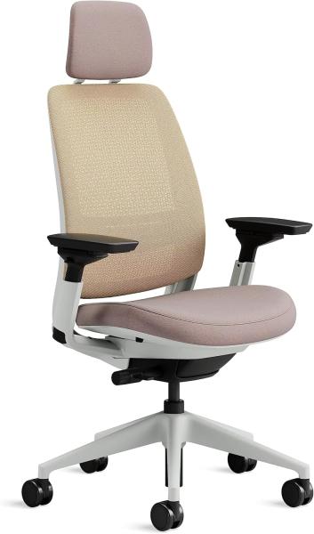 Steelcase Series 2 Bürostuhl mit Netzrücken in Beige und Sitzbezug in Linse mit Kopfstütze