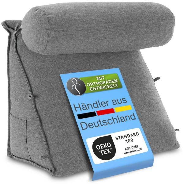 aktivshop Rückenkissen mit Nackenrolle für Bett & Sofa, 55x50x30cm, waschbarer Bezug Bild 1