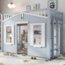 Das liebevoll gestaltete Fensterdesign sorgt für Lichtdurchlässigkeit und macht das Bett zu einem echten Blickfang. Die frische blaue Farbgebung bringt gute Laune ins Kinderzimmer und passt zu modernen, verspielten oder natürlichen Einrichtungsstilen.