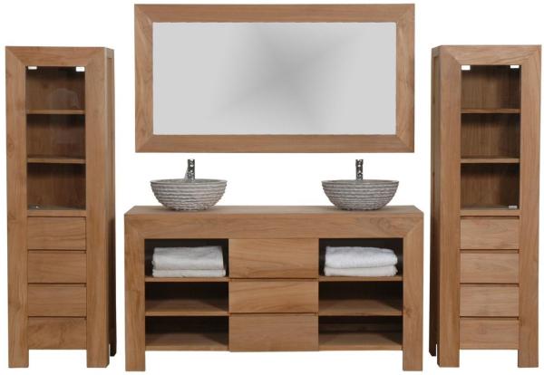 Badmöbel Set Pajala Teak Massivholz - Breite vom Unterschrank: 180 cm - Breite vom Spiegel: 180 cm - Anzahl Hochschränke: 2 Hochschränke Bild 1