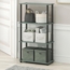 Praktisches und stilvolles 4-stufiges Aufbewahrungsregal in Salbeigrün, ideal für Wohnzimmer, Garage oder Homeoffice. Mit einem modernen Design fügt es sich nahtlos in kleine Räume ein und bietet ausreichend Platz für Bücher, Magazine und Dekoration. Jedes Regal trägt bis zu 15 lbs, insgesamt bis zu 60 lbs. Hergestellt aus robustem Verbundholz und verstärkt mit stabilem Kunststoff, ist es einfach ohne Werkzeug zu montieren.