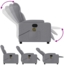 Lehnen Sie sich zurück und entspannen Sie sich in diesem äußerst bequemen Massage-Relaxsessel. Mit einer manuellen Liegefunktion, die eine maximale Neigung von 135 Grad ermöglicht, und einer 6-Punkt-Vibrationsmassage sorgt dieser Sessel für ein unvergleichliches Sitzerlebnis. Der hellgraue Stoff ist atmungsaktiv und strapazierfähig, während die praktischen Getränkehalter und die Seitentasche zusätzlichen Komfort bieten. Der stabile Rahmen aus Holz und Metall garantiert Langlebigkeit.