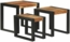 Dieses Set aus drei Nesting-Tischen vereint modernes Design mit Funktionalität. Hergestellt aus massivem Akazienholz und einem stabilen Metallrahmen, bieten die Tische eine glatte Oberfläche und einen markanten industriellen Look in Braun und Schwarz. Mit den Gesamtabmessungen von 50 x 40 x 45 cm (L x B x H) sind sie ideal für kleine Räume und lassen sich platzsparend übereinander schieben.