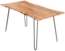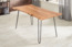 Der Esstisch "Hannah" kombiniert Natürlichkeit mit modernem Design. Die 140 x 80 cm große Tischplatte aus massiver Akazie mit echter Baumkante und Klarlackversiegelung steht auf einem mattschwarzen Hairpin-Gestell aus Roheisen. Jedes Exemplar ist aufgrund der einzigartigen Holzmaserung ein Unikat und passt perfekt in verschiedene Einrichtungsstile.