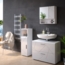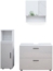 Das Vicco Badmöbel-Set Irma in Weiß Hochglanz besteht aus drei stilvollen Teilen: einem Waschbeckenunterschrank, einem Spiegelschrank und einem Midischrank. Dieses Set bietet großzügigen Stauraum für Ihre Badutensilien und verleiht Ihrem Badezimmer durch sein innovatives Design eine luxuriöse Note. Die Möbel sind mit Füßen ausgestattet, die den Boden schützen und die Reinigung erleichtern.