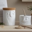 Die FiftyEight Products Vorratsdose 900 ml "Heiter" ist eine stilvolle Ergänzung für Ihre Küchenausstattung. Die Porzellandose mit einem Fassungsvermögen von ca. 900 ml eignet sich perfekt zum Aufbewahren von Knabbereien, Bonbons, Tee, Kaffee oder Gewürzen. Der edle Korkdeckel ermöglicht eine lose Verschließung und stapelbare Aufbewahrung. Bitte beachten Sie, dass der Korkdeckel nicht spülmaschinenfest ist und nur per Handwäsche gereinigt werden sollte. Die Dose selbst ist mikrowellengeeignet und spülmaschinenfest.