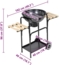 Seitlich am BBQ Grill gibt es zwei Ablagen aus Holz und im Metallrahmen eine weitere Ablage für das nötige Zubehör. Mit den zwei Rollen kann der Kugel Grill einfach verschoben werden.