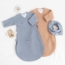Der Bemini Magic Bag Steppschlafsack Steinblau ist der ideale Begleiter für Ihr Baby von 1-4 Monaten. Der Schlafsack besteht aus hochwertigem und weichem Material, das für optimalen Schlafkomfort sorgt. Mit dem Doppelreißverschluss können Sie Ihr Kind einfach und schnell wickeln. Die integrierten Fäustlinge halten die Hände warm und schützen vor Kratzern. Der Schlafsack verhindert, dass sich Ihr Kind umdreht oder aus dem Bett steigt. Dank der Gurtöffnung kann Ihr Kind den Schlafsack auch im Autositz tragen. Der Schlafsack ist waschbar bei 30°C und für Kinder von 50-70 cm geeignet. Der TOG Wert beträgt 1.5.