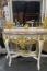Prunkvolle Barock Spiegelkonsole von Casa Padrino mit Marmorplatte in Weiß, Gold und Braun. Die Konsole ist handgefertigt aus Massivholz, Polyresin, Marmor und Spiegelglas. Maße: B150 cm x H230 cm. Ein elegantes und edles Möbelstück im Antik Stil. Jedes Stück ist ein Unikat mit authentischen Antikspuren. Casa Padrino - renommierter Hersteller von Barock Möbeln.