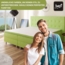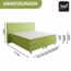 Das Boxspringbett Neo First Class in Pistazie vereint stilvollen Schlafkomfort mit durchdachtem Design. Das Holzrundgestell mit Holzfaserplatten bildet die stabile Basis für die 5-Gang-Matratze und den PU-Schaum-Topper. Mit einer Kopfteilhöhe von 120 cm und einer Liegehöhe von 59 cm bietet es optimalen Komfort. Der Bezug aus Webstoff (100% Polyester) sorgt für eine ansprechende Optik und ein angenehmes Schlafgefühl.