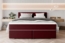 Das 99rooms 'Phönix' Boxspringbett in Bordeaux vereint elegantes Design mit hohem Komfort. Mit einer Liegefläche von 200 x 200 cm und einer Liegehöhe von 50,5 cm bietet es eine optimale Schlafposition. Der Taschenfederkern der Matratze und der Kaltschaum-Topper sorgen für eine angenehme Nachtruhe. Das moderne Design und die Kunststofffüße in Chromoptik verleihen Ihrem Schlafzimmer einen romantischen Charme.