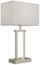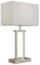 Die Tischleuchte Sigurd hat einen eckigen Lampenschirm aus Stoff, der mit E27-Lampe bestückt wird, und eine weitere Lichtquelle mit LEDs, die sich direkt im Gestell befindet und für attraktive Lichteffekte sorgt. Ein Dimmer mit Memoryfunktion ist integriert und dient zur Regulierung des LED-Lichts. Für die E27-Lampe befindet sich ein Schalter in der Nähe der Fassung.