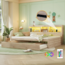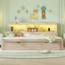 Massivholzbett mit Gästebett in der Größe 140x200 cm, ausgestattet mit RGB LED-Beleuchtung, die bequem per Fernbedienung gesteuert werden kann. Die integrierte Mehrfachsteckdose bietet 2 Steckdosen und 2 USB-Anschlüsse. Das Gästebett kann einfach unter das Hauptbett gerollt werden und bietet zusätzlichen Schlafplatz. Zudem sorgt der Stauraum mit Regalen an der Liegefläche für Ordnung und Platz für Bücher oder Dekoration.