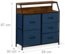 Die Kommode mit 5 Schubladen bietet großzügigen Stauraum und überzeugt durch ihr modernes Industrial-Design. Mit einer Kombination aus schwarzem Metall, blauem Vlies und MDF in dunkelbrauner Holzoptik ist sie ein echter Blickfang. Die zwei Ablagen eignen sich ideal für Dekoration oder Pflanzen, während die Schubladen Kleidung, Spielzeug und Bücher ordentlich verstauen. Die Kommode ist vielseitig einsetzbar und passt perfekt in Flur, Schlafzimmer oder Wohnzimmer.