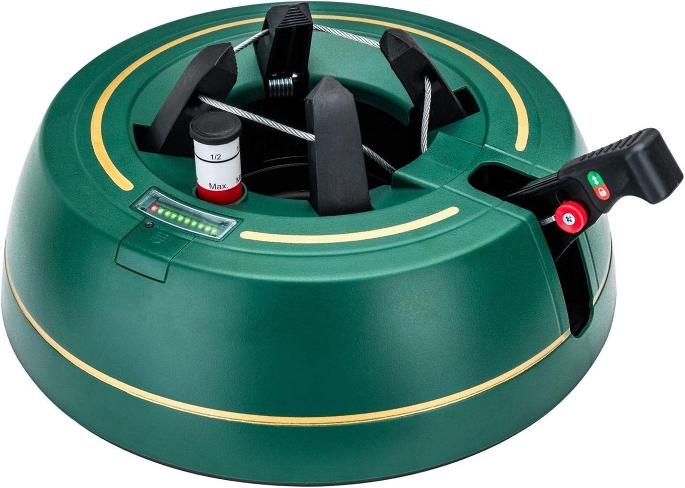 FHS Baumständer "Select" mit Fußhebel/- und Einseiltechnik, Kindersicherung, Vollkunststoffgehäuse großer Wassertank, mit optischer LED-Füllstandsanzeige 10 LED's - stellt auch in der Dunkelheit immer exakt den Wasserstand im Wasserbehälter optisch gut sichtbar dar, zusätzlich mechanische Wasserstandsanzeige - Überprüfungsmöglichkeit des Verbrauchers, Öffnung zum Entleeren der Christbaumständer.