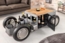 Ein einzigartiger Couchtisch für Oldtimer-Fans, der mit seinem authentischen Design und echten Reifen begeistert. Die Tischplatte aus robustem Mangoholz in natur und das silberne Stahlgestell verleihen dem Tisch einen stilvollen Look. Mit mehreren Staufächern und einem Flaschenhalter für sechs Flaschen ist dieser Couchtisch nicht nur ein Hingucker, sondern auch praktisch für Ihr Wohnzimmer.
