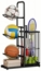 Praktischer und moderner Sportgeräte-Regalwagen zur Aufbewahrung von Bällen und Zubehör. Der Ballständer aus pulverbeschichtetem Kohlenstoffstahl in Schwarz bietet 3 abnehmbare Ablagen für verschiedene Ballarten sowie einen großen Korb für weiteres Sportzubehör. Mit höhenverstellbaren Füßen sorgt er für Stabilität auf unebenem Boden. Ideal für Garage, Keller oder Hobby-Sporträume.
