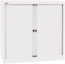 Der BISLEY Rollladenschrank in verkehrsweiß ist die ideale Lösung für platzsparende Büros. Mit einer Höhe von 103 cm, einer Breite von 100 cm und einer Tiefe von 43 cm bietet er ausreichend Stauraum für bis zu 16 Aktenordner. Der Schrank ist aus robustem 0,8 mm dickem Stahlblech gefertigt und verfügt über eine widerstandsfähige Strukturlackierung. Die Rollläden aus Kunststofflamellen lassen sich zu 100% öffnen und schließen. Inklusive sind zwei höhenverstellbare Einlegeböden mit einer Tragkraft von 60 kg pro Boden.