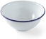 Weißer emaillierter Stahl mit einem schönen blauen Rand. Hochwertige Emaille, abriebfest. Stapelbar für eine praktische Lagerung. Spülmaschinengeeignet. Ofensicher. Nicht mikrowellengeeignet.
