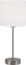 - Ansprechende Kombination aus weißem Stoffschirm und matt-nickel Fuß