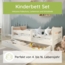 Dieses charmante Kinderbett aus massivem Kiefernholz vereint klassisches Design mit durchdachter Funktionalität und maximaler Sicherheit. Es ist in den Innenmaßen 80x160 cm oder 90x200 cm erhältlich und bietet Platz für Standard-Kindermatratzen. Mit einer Höhe von 17 cm über dem Boden und einer großen Schublade darunter, ist es ideal für moderne Kinderzimmer. Sicherheitsbarrieren verhindern ungewolltes Herausfallen und unterstützen Kinder beim selbstständigen Ein- und Ausstieg.