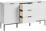 Modernes Sideboard mit 2 Türen in Weiß, das durch seine geriffelten Vorderseiten besticht. Mit zwei Türen und drei tiefen Schubladen bietet es großzügigen Stauraum und fügt sich perfekt in moderne oder skandinavisch inspirierte Interieurs ein. Hergestellt aus strapazierfähigem MDF mit einer glatten, lackierten Oberfläche und stabilen Metallbeinen, vereint es Funktionalität und Stil.