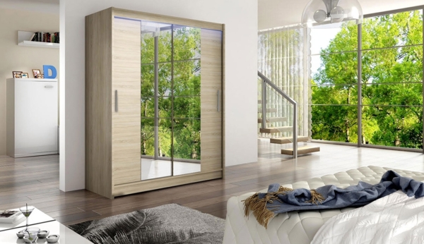 Kleiderschrank Westa II, mit RGB LED Beleuchtung, Farbe: Sonoma Eiche / Spiegel Bild 1