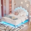 Das Prinzessinnenbett „Crown“ ist der Traum eines jeden Mädchens. Mit einem verspielten Kronen-Design und sanft geschwungenen Kopf- und Fußteilen in Wolkenform, verwandelt es jedes Kinderzimmer in eine märchenhafte Prinzessinnenwelt. Das Bett ist mit pflegeleichtem Kunstleder in Weiß bezogen und bietet dank der integrierten LED-Beleuchtung, die über eine 24-Tasten-Fernbedienung gesteuert wird, ein individuelles Ambiente.