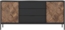 Vente-unique - Sideboard mit 2 Türen und 3 Schubladen in Schwarz und Holzfarben dunkel. Die elegante MIALINE-Kollektion vereint Funktionalität und Stil. Mit einem Soft-Close-System ausgestattet, sorgt das Sideboard für sanftes Schließen der Türen und Schubladen. Die Kombination aus Holzspan und goldfarbenen Akzenten schafft ein charmantes Ambiente und bietet gleichzeitig ausreichend Stauraum für Ihre Gegenstände.