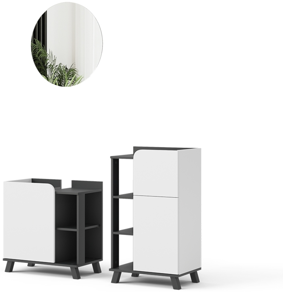 Verwandeln Sie Ihr Badezimmer mit dem Badmöbel-Set Karen in eine Wohlfühloase. Dieses 3-teilige Set in Anthrazit/Weiß bietet modernen Stauraum und hochwertige Verarbeitung. Der Waschbeckenunterschrank sorgt für Ordnung, während der Spiegelschrank Ihr tägliches Styling erleichtert. Genießen Sie ein elegantes und funktionales Badezimmer, in dem Sie sich rundum wohlfühlen.